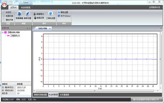 礦用鉆孔軌跡測量儀解析軟件是華虹公司為深入解析YZG6.4礦用鉆孔軌跡測量儀采集的數據而研發的軟件系統??蓪μ綔y數據進行軌跡投影成圖,三維成圖等。