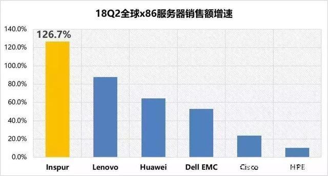 Gartner公司公布的數據顯示,2018年第二季度全球服務器市場調查報告稱,位居出貨量前三位的廠商是戴爾EMC、HPE和浪潮。浪潮服務器全球市場份額進一步增長至9.1%,位居全球第三;中國市場份額占比為29.1%,蟬聯中國市場第一。